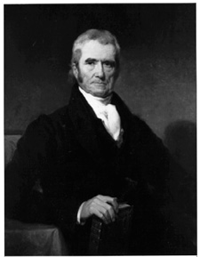 He was was elected to the United States House of Representatives in 1799, and in 1800 President John Adams appointed him Secretary of State. The next year, President Adams nominated him Chief Justice of the United States Supreme Court, and the Senate confirmed the appointment on January 27, 1801. He continued to serve as Secretary of State throughout President Adams’s term and continued in both positions for a brief time following President Thomas Jefferson’s inauguration.